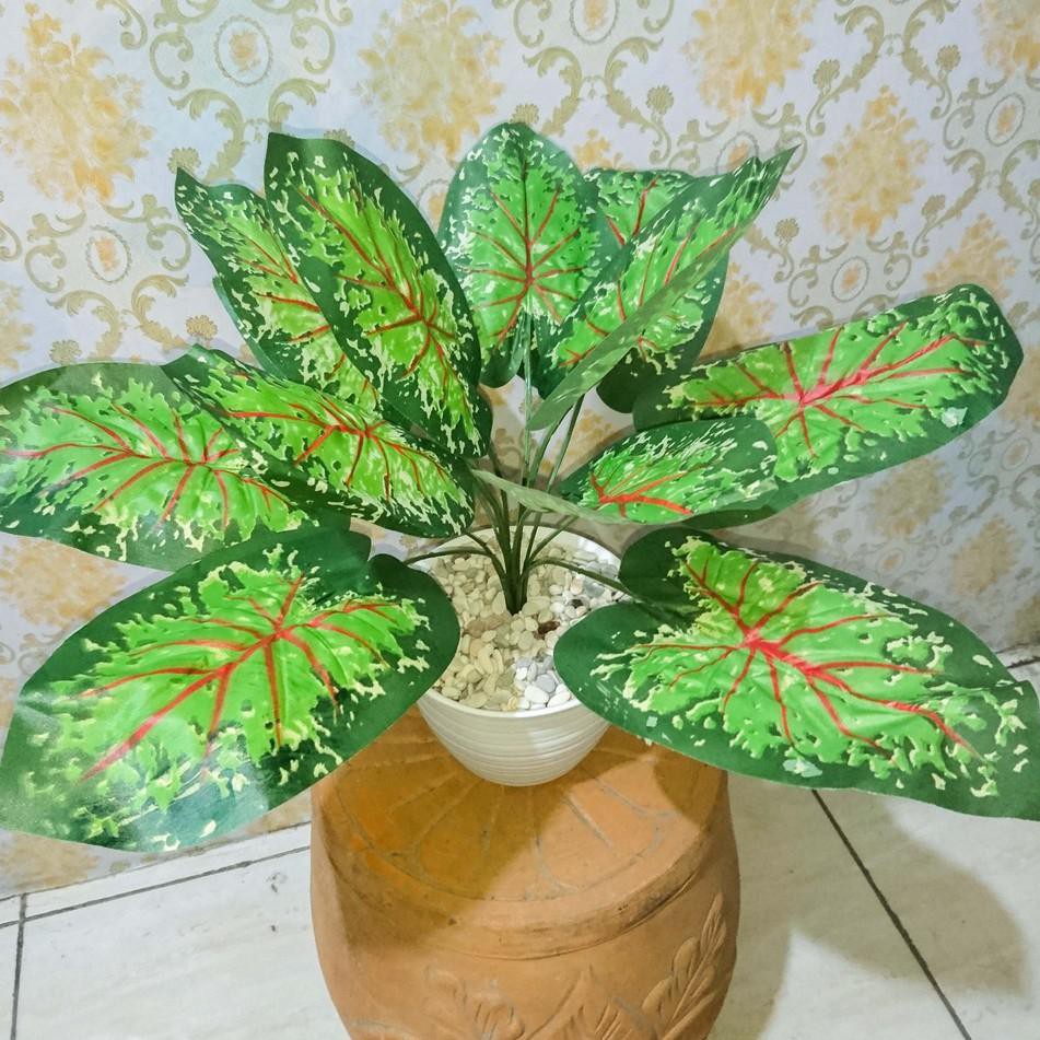 Harga Grosir Tanaman Hias Plastik Keladi Hijau Dekorasi Rumah Daun Keladi Artificial Dengan Pot Shopee Indonesia