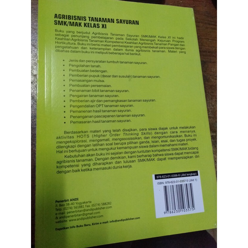 Jual Buku Smk Agribisnis Tanaman Sayur Kelas Xi Penerbit Andi Kab Bantul Toko Kavy Tokopedia